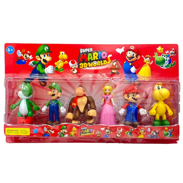 Descopera setul de 6 figurine Super Mario, inspirate de jocul Super Mario 3D World, care aduce in lumea ta personajele indragite intr-un format mini de 7 centimetri si intr-o vibranta nuanta de rosu.